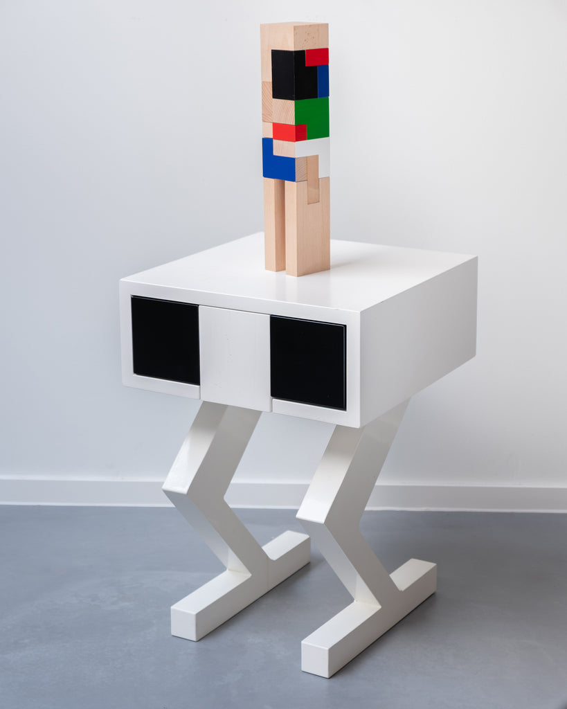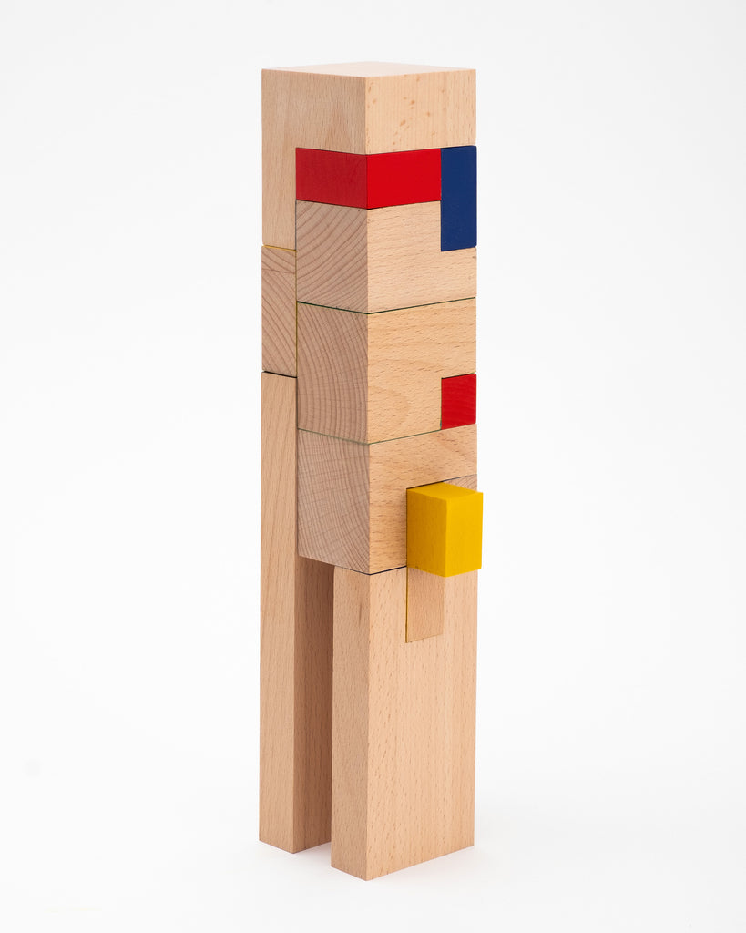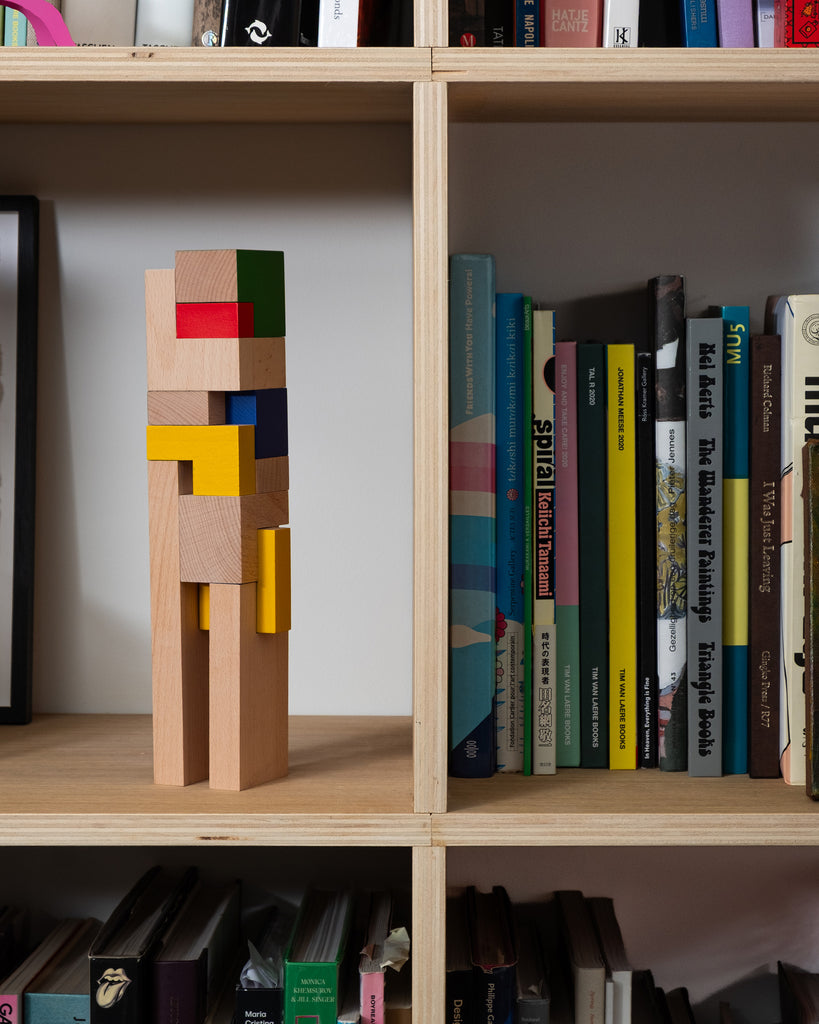 The form nods to traditional wooden toys, yet its two “legs” give it a hint of character, part figure, part robot, part tower. Familiar, but not fixed. Revealing the colours is easy, concealing them again becomes an unexpectedly engaging puzzle. Hovering between sculpture and toy, BLOCKED encourages a gentle sort of hands-on curiosity. A reminder that play doesn’t really disappear, it just changes form.